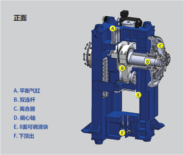 HDP系列2500噸以上的大型壓力機可因雙連桿結構而減少偏心負載,從而 在多工序生產(chǎn)線也可生產(chǎn)高精度產(chǎn)品,以高精度制作的滑塊和在前、后兩面 都可進行前、后、左、右調(diào)節(jié)的8面導向桿實現(xiàn)了產(chǎn)品的高精度。